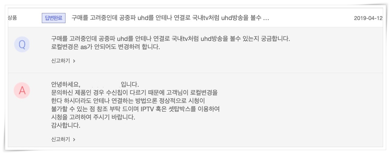 uhd방송을 보려면 어쩔수 없이 국내 제품을 구매하는 것이 나을듯 싶다.